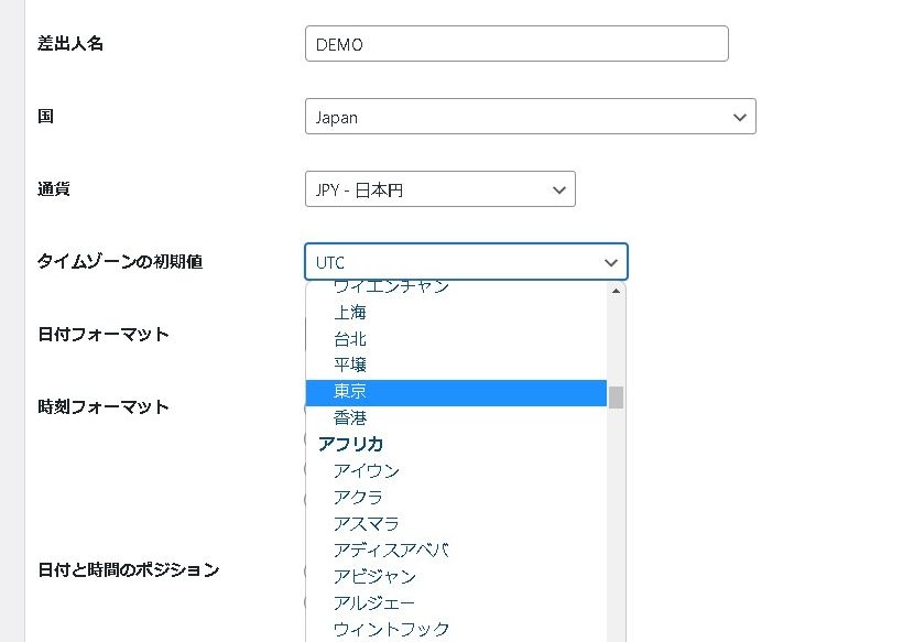 一般設定の中に「タイムゾーンの初期値」という場所があったので「東京」に変更しておきます。
