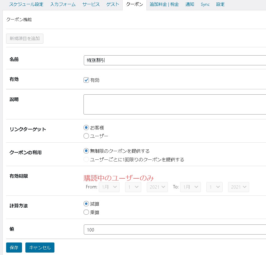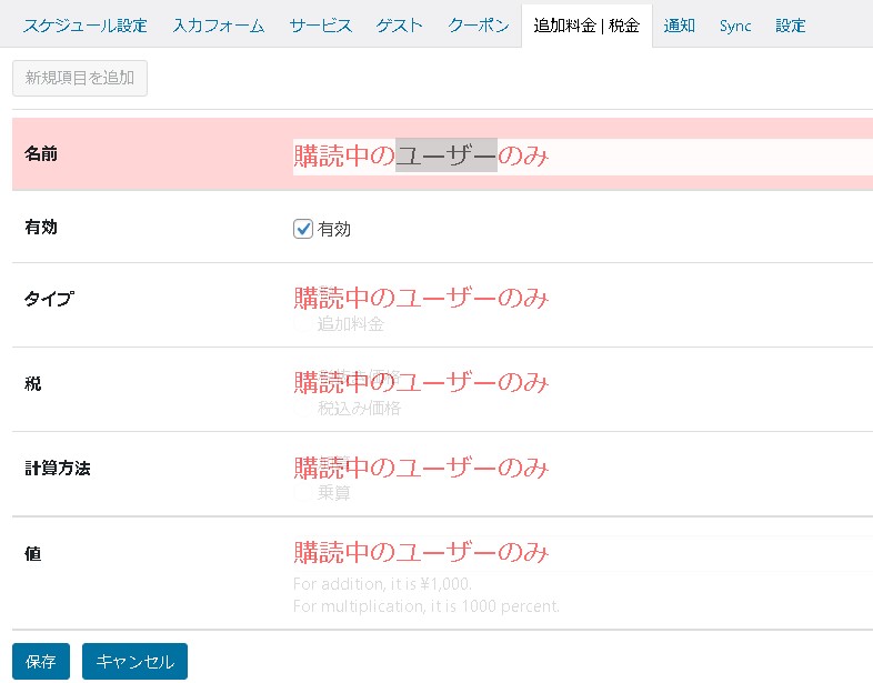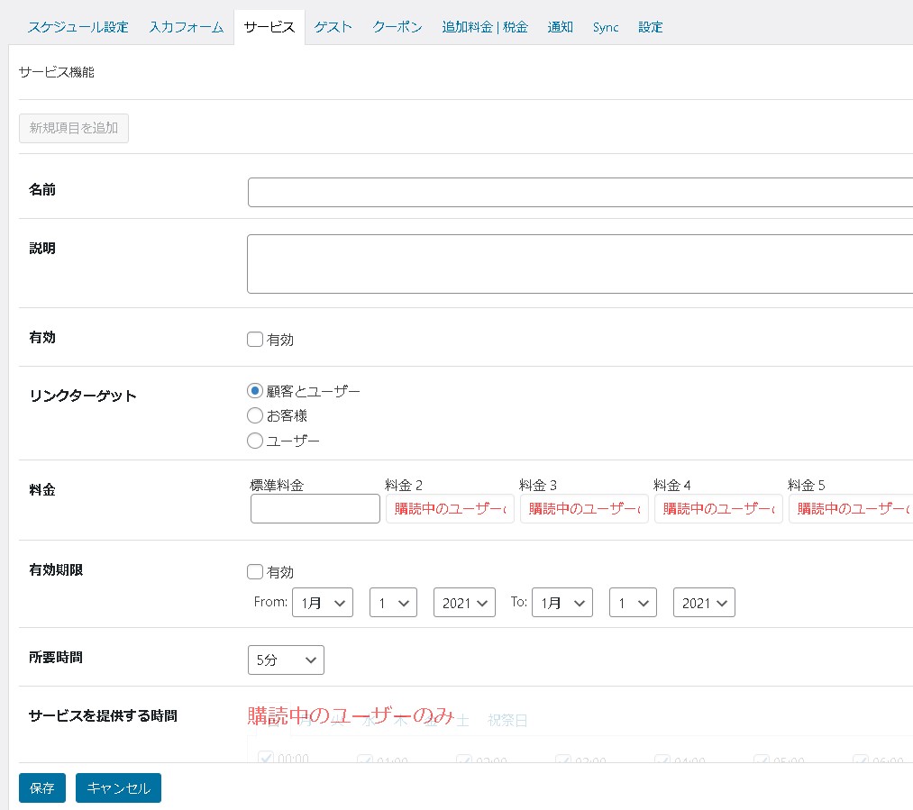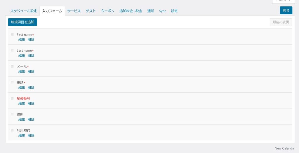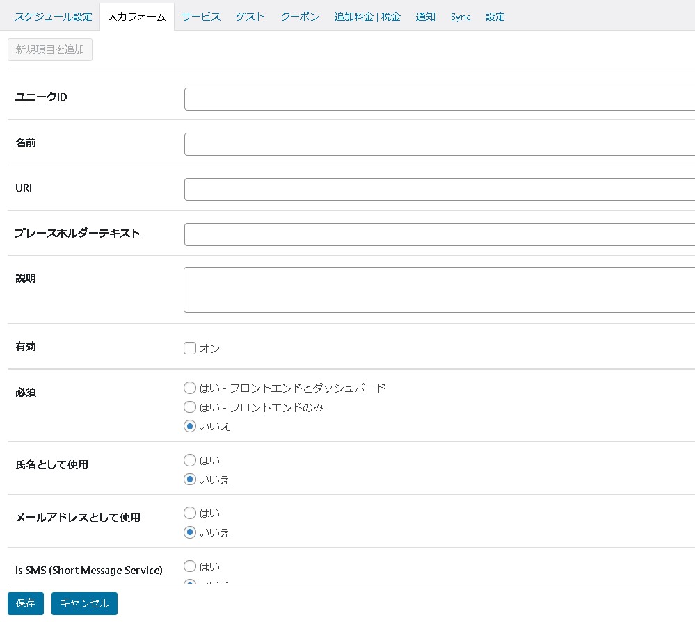 入力フォームのタブで、予約時に入力するフォームの設定ができます。