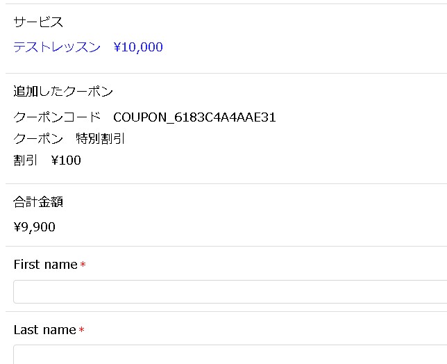 予めお送りしていたクーポンコードを入れてもらうことで、料金を割引してもらう機能が追加されます。