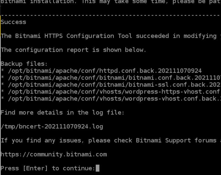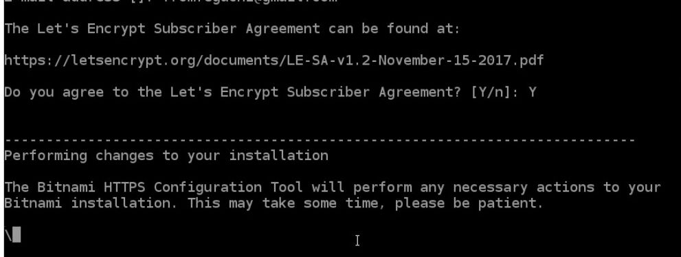 Bitnami HTTPS構成ツールは、Bitnamiインストールに必要なアクションを実行します。 これには時間がかかる場合がありますので、しばらくお待ちください。