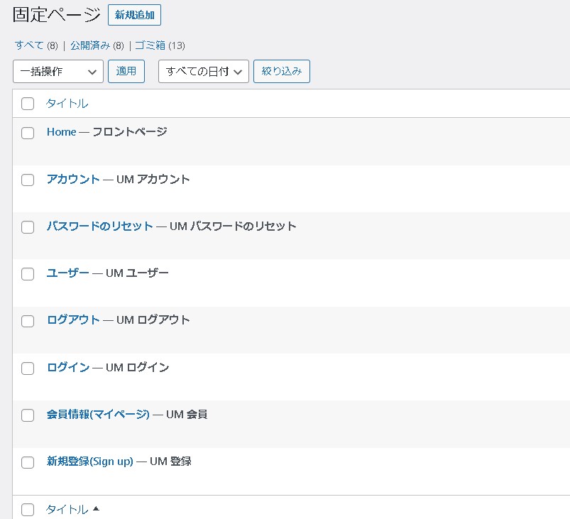 特に固定ページを作らずとも、プラグインを有効化した時に必要な固定ページが既に作られているので、あえて作成する必要がなければそのまま利用することもできます。