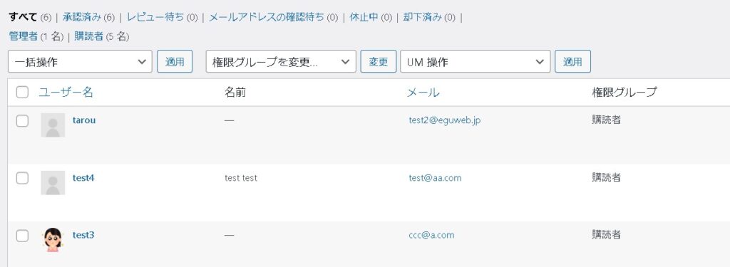 ワードプレスの管理画面には購読者としてユーザーが追加されています。