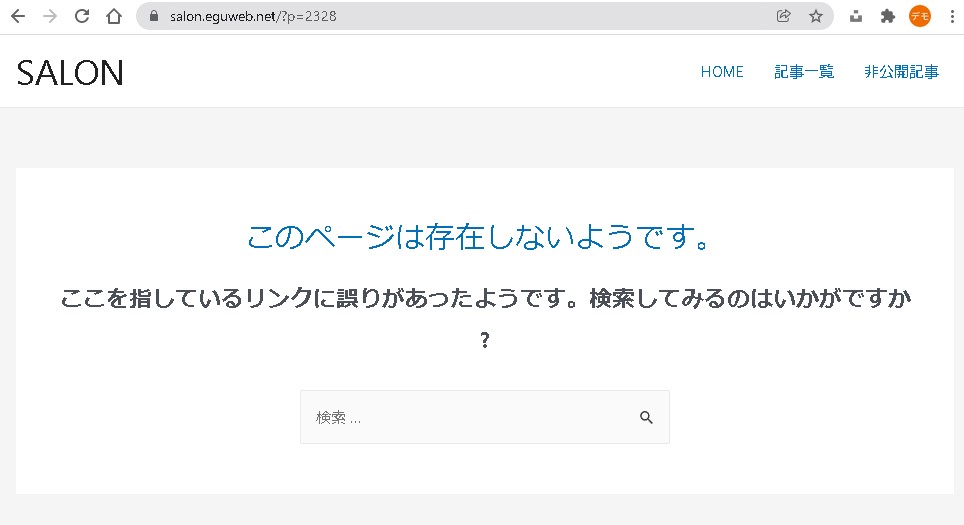 このステータスが非公開となっている記事は、一般のユーザーが開いた時には「ページがありません」「Not Found」のページとして表示されるようになっています。