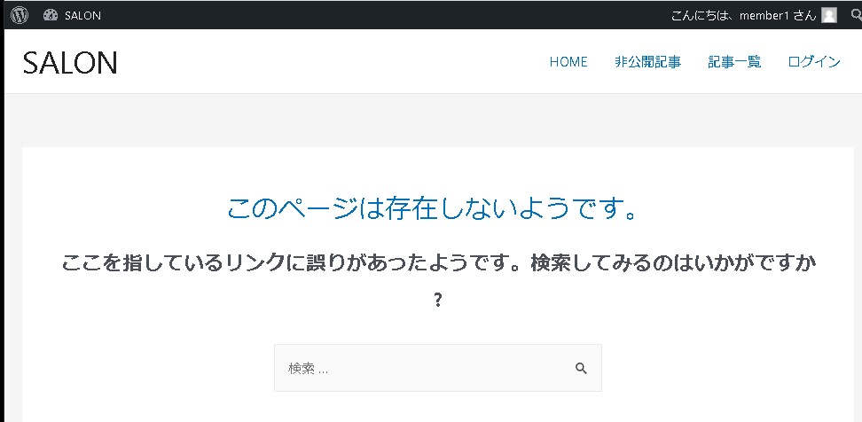 ワードプレスにはログインしていますが、権限が「購読者」のため、非公開記事は表示されません。