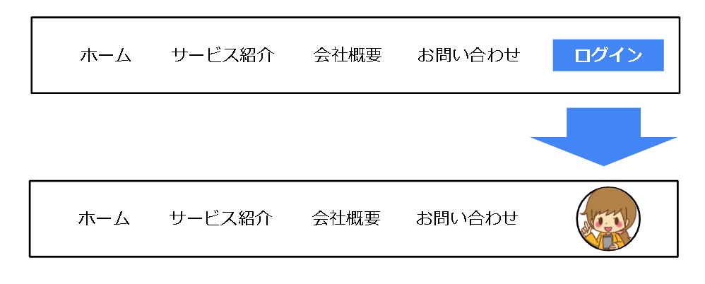 という感じにしておいて、ログインしていなければ「ログインボタンを表示させる」「何も表示させない」など指定ができます。