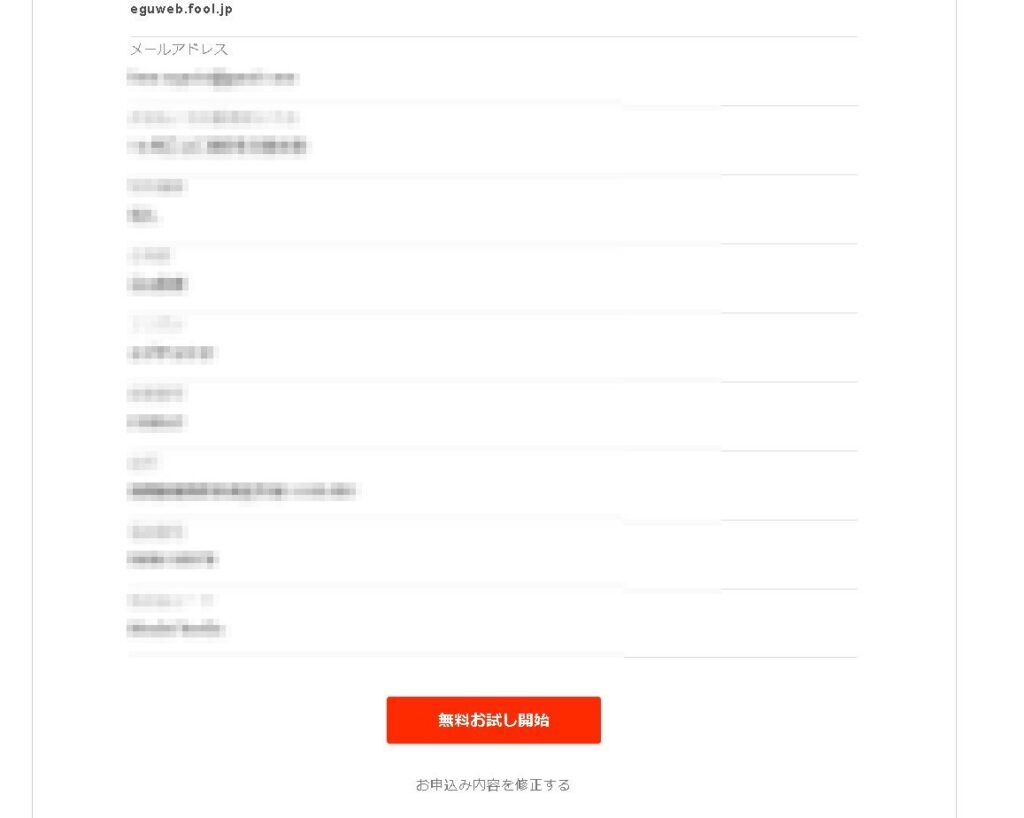 内容に問題がなければ「無料お試し開始」をクリックすると、お申し込み完了です。