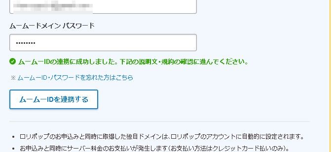 ログインに成功したら「ムームーIDの連携に成功しました。」と表示されます。