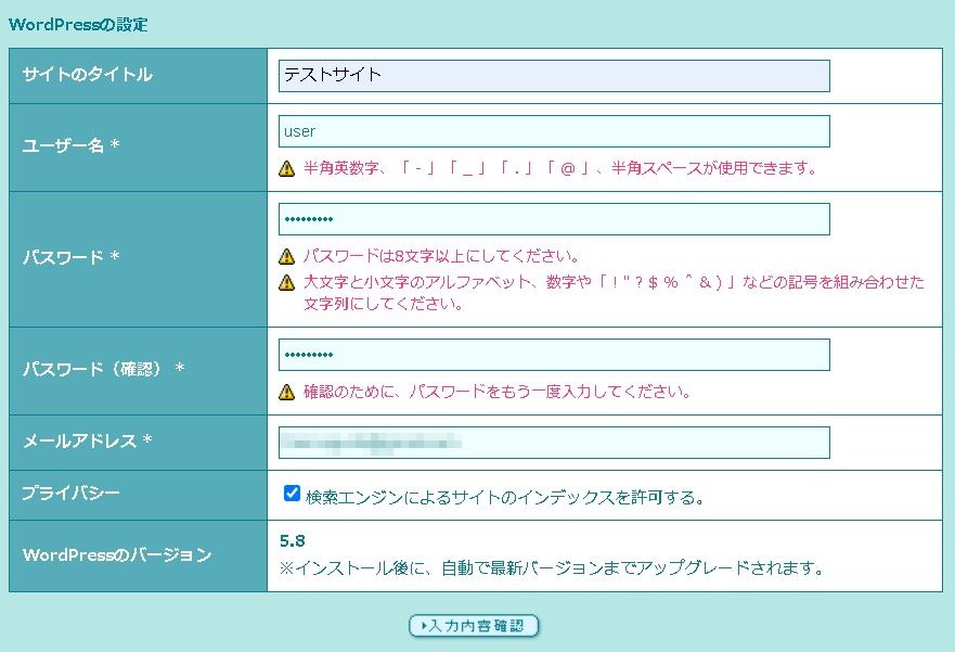 ここが空白になっている場合、レンタルサーバー内の全領域を使ってひとつのワードプレスを入れることになってしまいます。それだと 2つ目のワードプレスサイトを同サーバー内で作る時にとても困ったことになります。 公開 (アップロード) フォルダをワードプレスインストール前に設定しておきましょう。