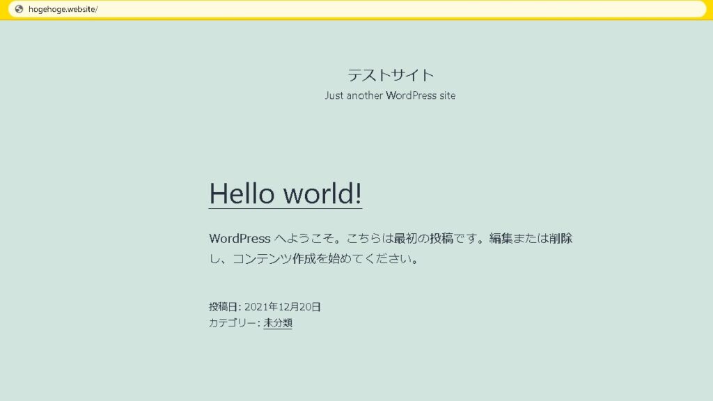 さっそく開いてみましょう。上記の「サイトURL」を押すか、独自ドメインをブラウザのURLの部分に入力します。