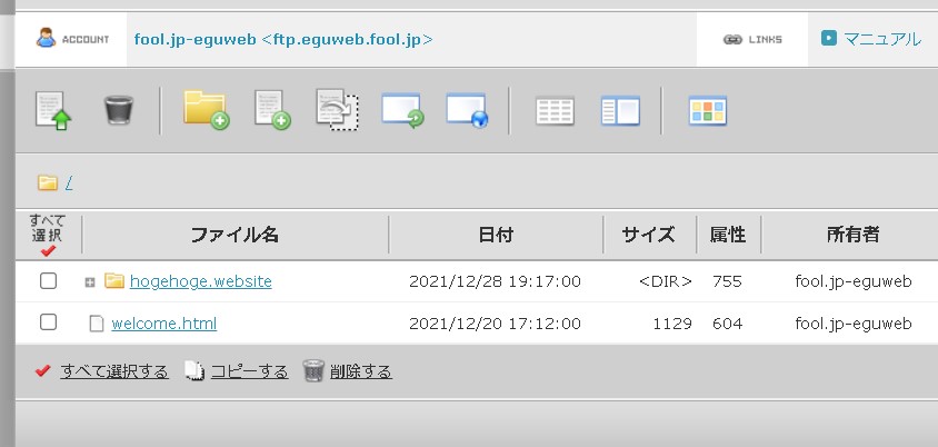 FTPで確認すると、ドメイン専用のフォルダが作られています。