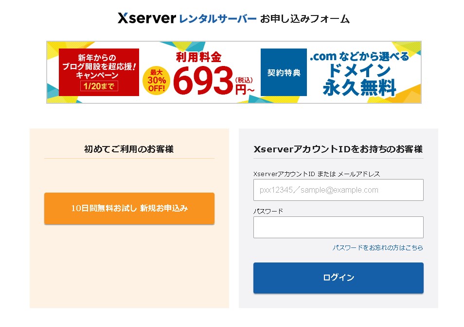 レンタルサーバー エックスサーバー お申し込みはこちら始めてご利用のお客様(新規お申し込み)