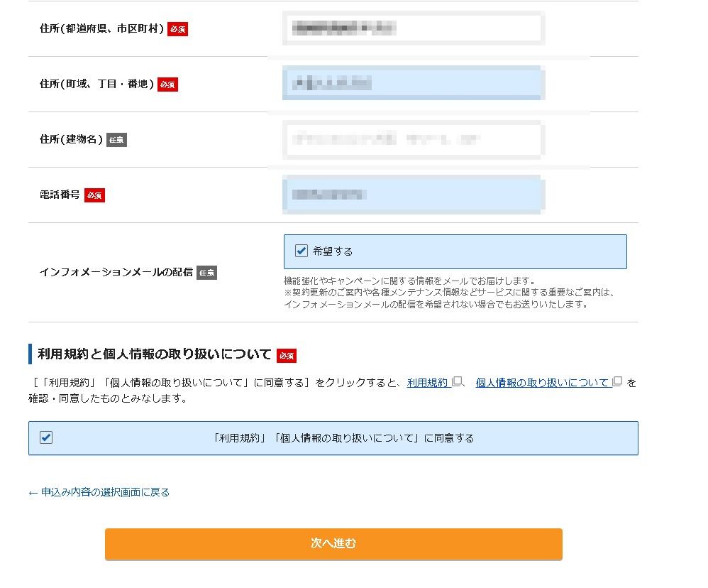 全部入力したら「次へ進む」を選択します。