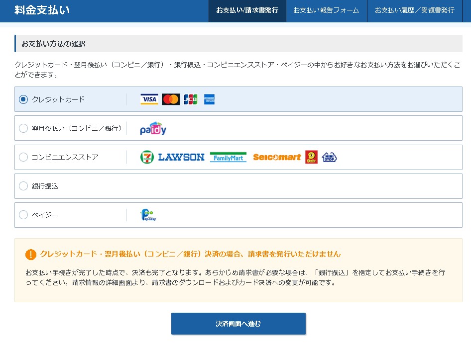 お支払い方法の選択に進みます。