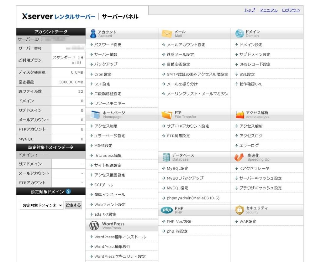 レンタルサーバーの管理画面に入りました。