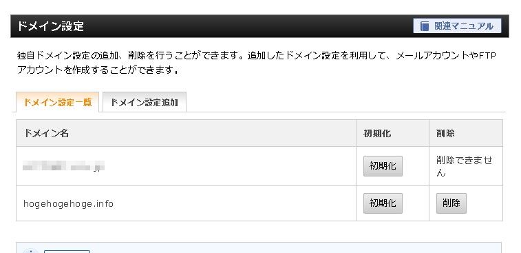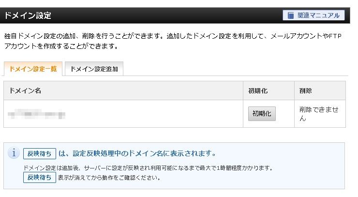 ドメイン設定一覧を開くと、今設定したドメインが追加されています。