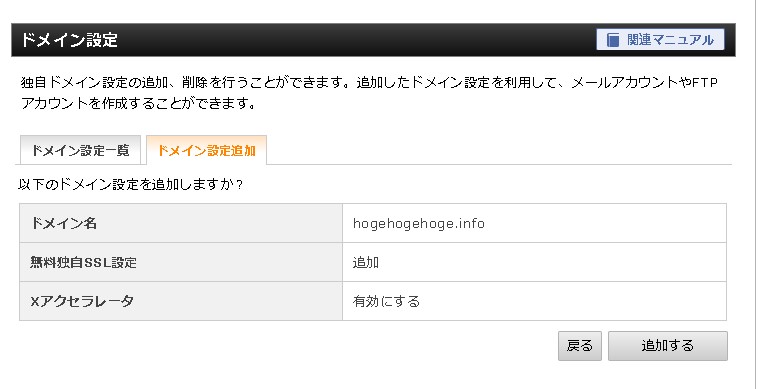 「追加する」を押すと、ドメインの追加が完了します。