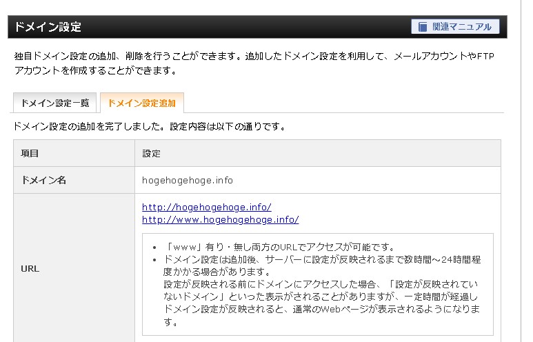 ドメインが追加されました!