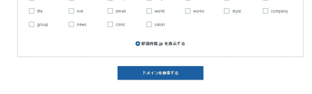 検索したいドメインと、ドットの右側(トップレベル)にチェックを入れたら「ドメインを検索する」を押します。