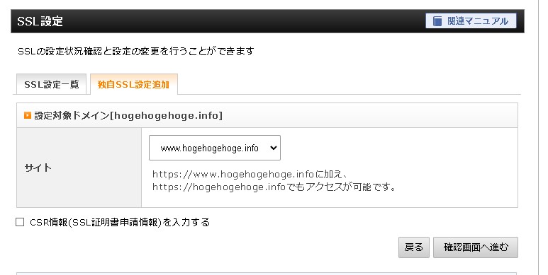 「CSR情報(SSL証明書申請情報)を入力する」の部分は、ひとまず入れなくても大丈夫かと思いますが、必要があればチェックを入れておきましょう。※詳細については別記事にて。