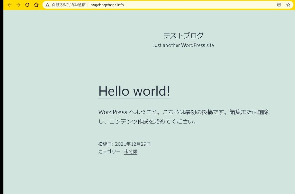 時間を置いて再度アクセスすれば、ワードプレスサイトが表示されているはずです。