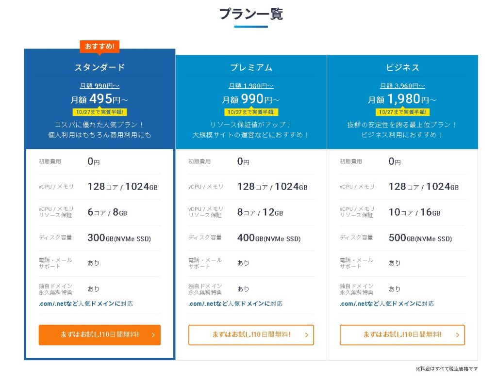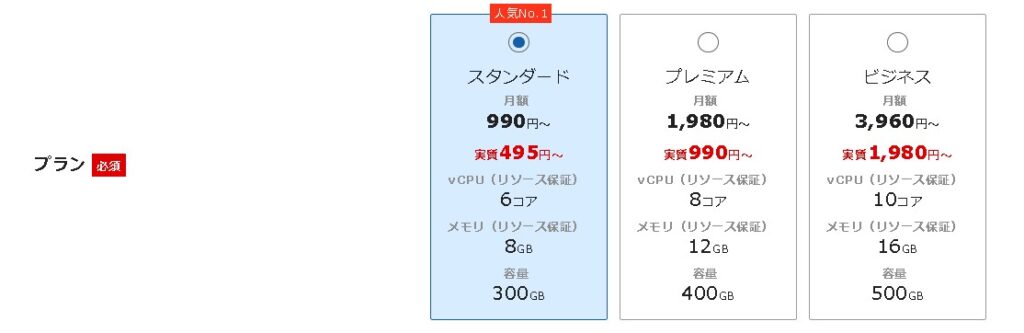 ただ、あとでプランアップグレードも出来ますので、最初はスタンダードプランから始めても良いかと思います。