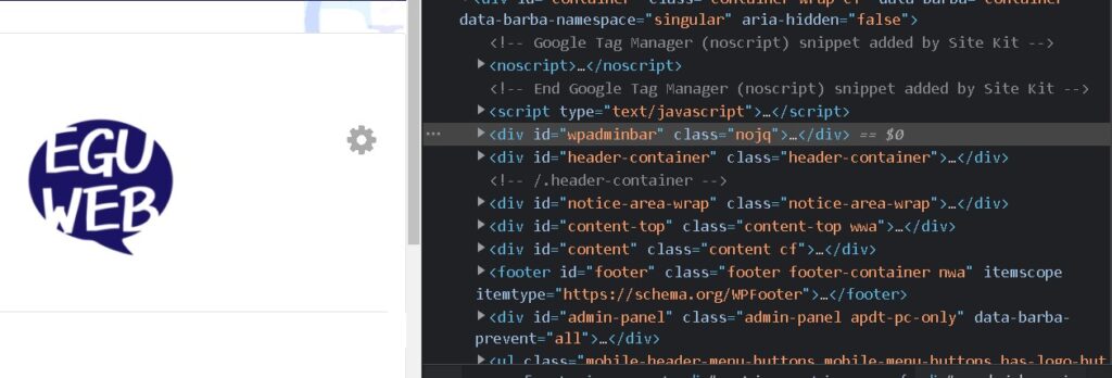 idが「wpadminbar」というidになっているようなので、こちらを使ってカスタマイズしてみます。