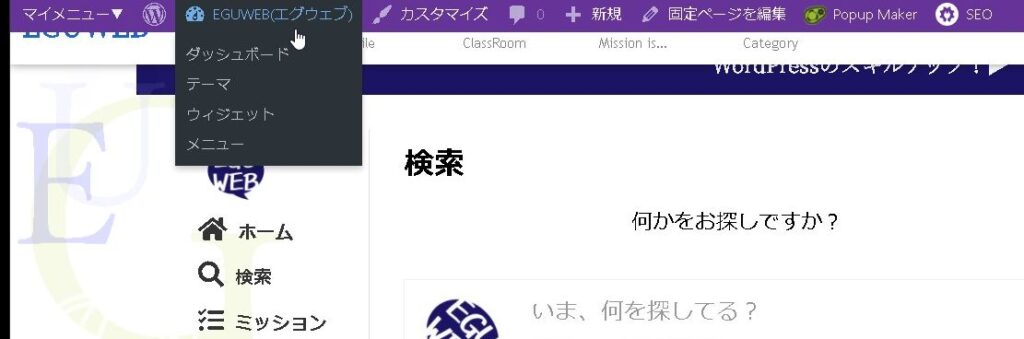 WordPress(ワードプレス)にログインした後にサイトを表示すると、画面の上部に「ツールバー(アドミンバー/管理バー)」と呼ばれる帯状の部分が表示されます。
