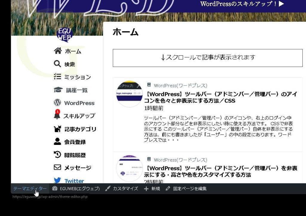ここ数回に渡りワードプレスの「ツールバー(Admin bar)」関連の事が連投中ですが、今回は「ツールバー(Admin bar)」に独自のリンクを設置する方法です。