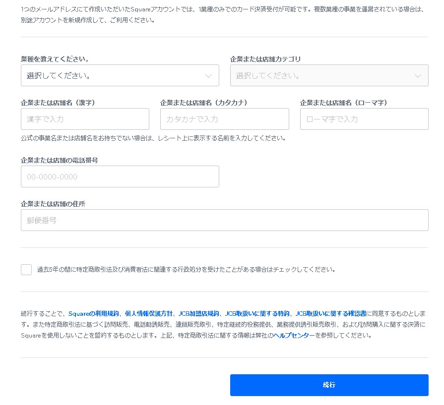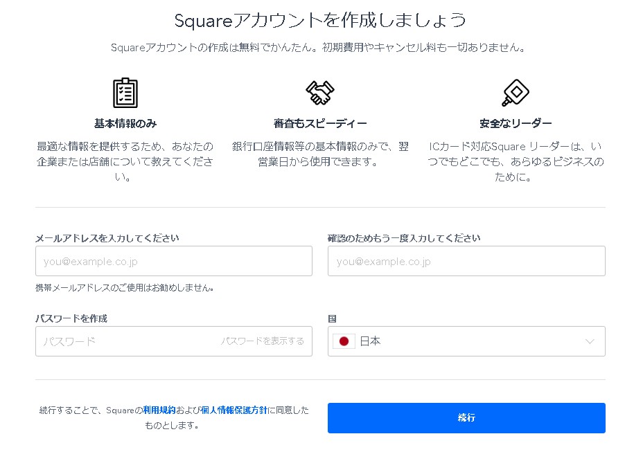 スクエア (Square)の登録はこちら