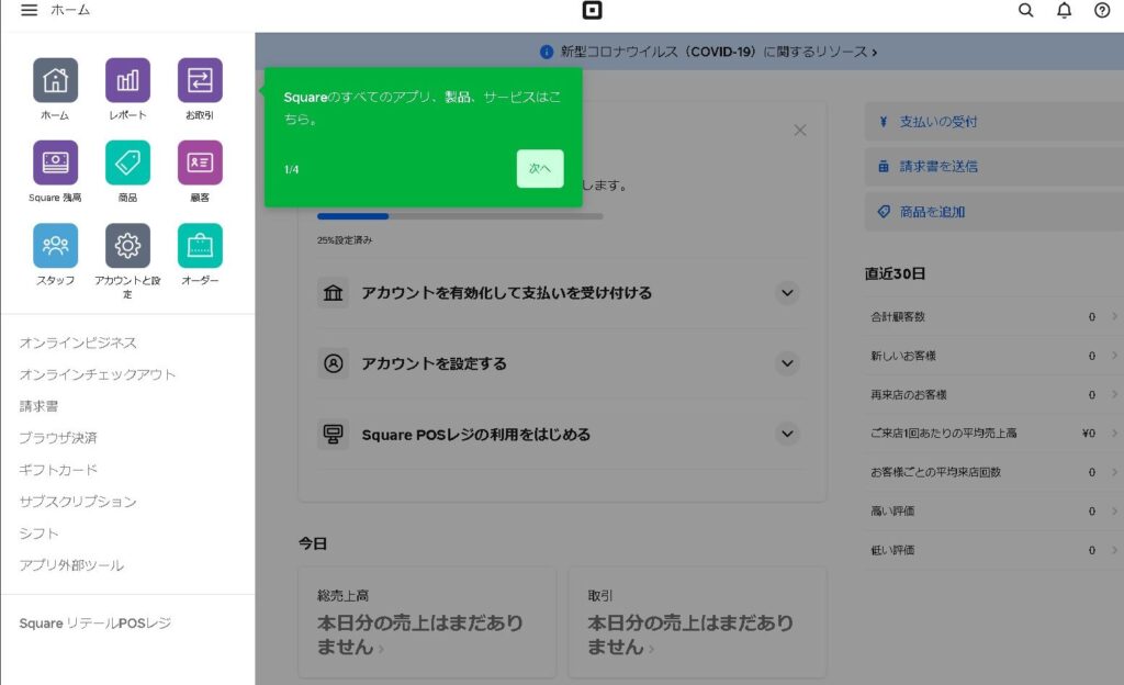 Square(スクエア) のアカウントが作成されました!これで、請求書を作成したりオンライン決済を受付できるようになります。