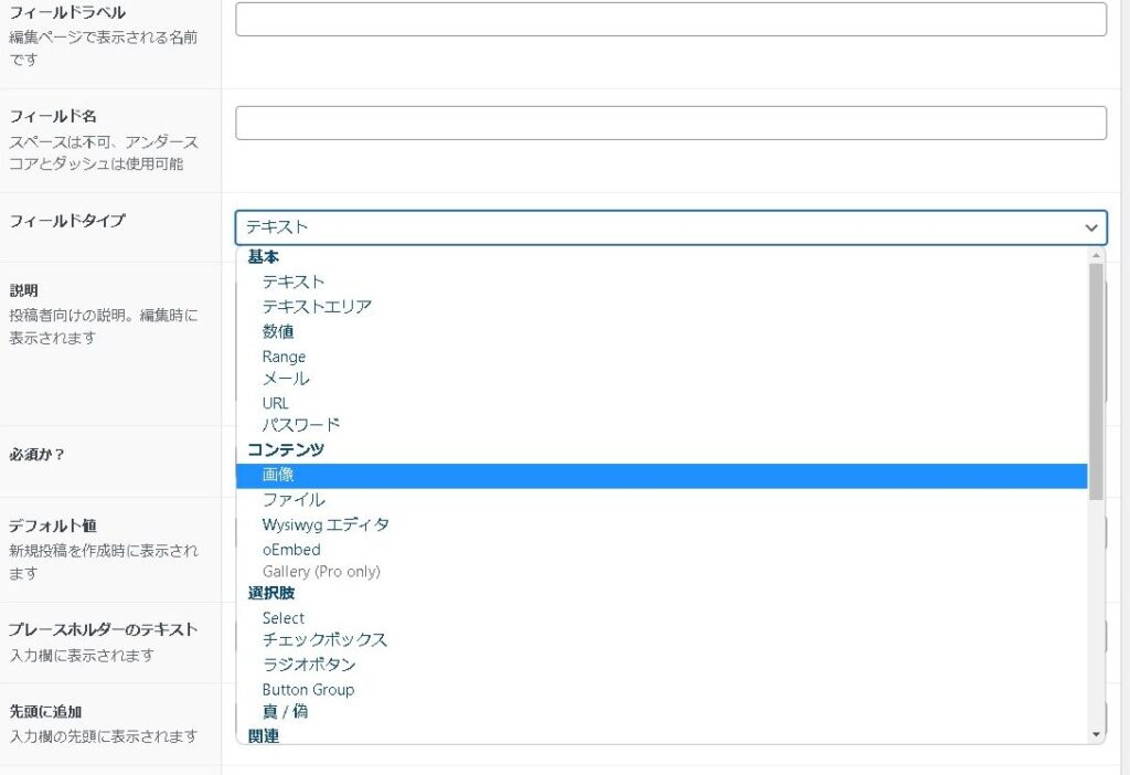 現時点で選択できるフィールドタイプは下記のようになっています。これだけ選択できるのもすごいですね…。