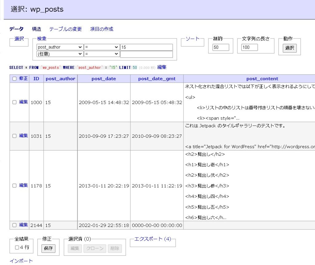 レコード数は4つあるはずですが・・・0となりました。