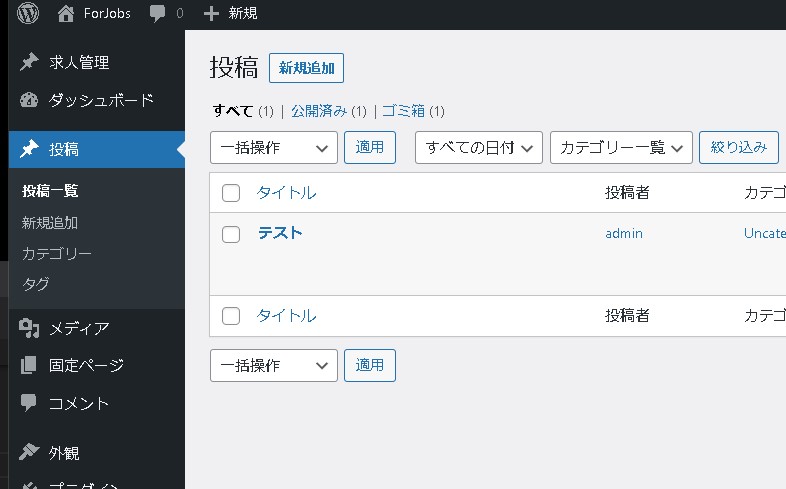 新たに「求人管理」というカスタム投稿タイプが追加されました。