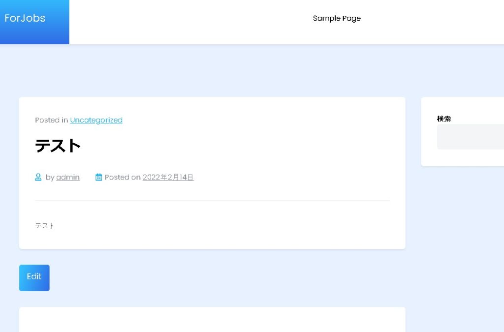 全ての投稿で表示させると、投稿と分けたいときに困るので「/job/」のページのみ、出力させるようにしてみます。single-job.phpファイルを用意して、ファイル内に出力タグを設定します。