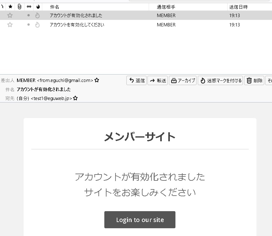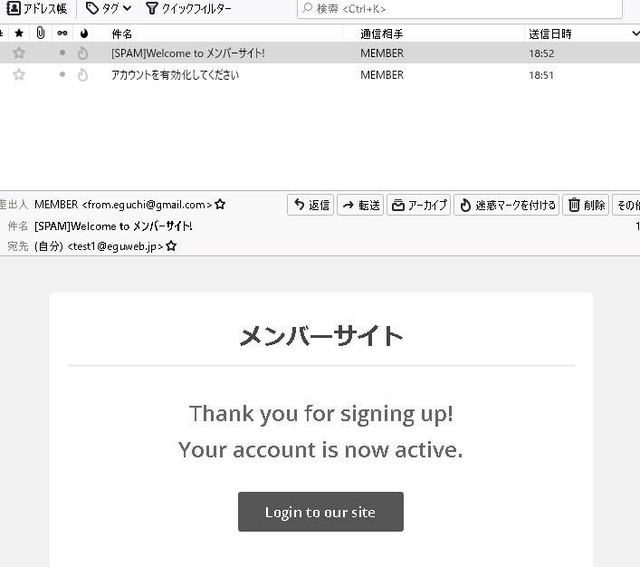 ただ、このままでは、会員新規登録の際にメールが届かないようです。