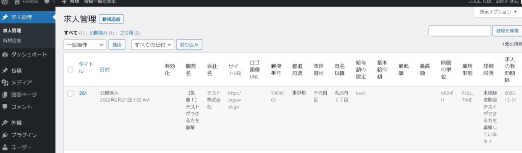 前回までで「求人管理」機能を追加して、カスタムフィールドをカラムに表示させる部分を作成できました。