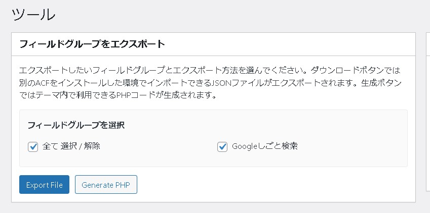 アドバンスドカスタムフィールドの「ツール」から、JSONファイルをエクスポートできます。