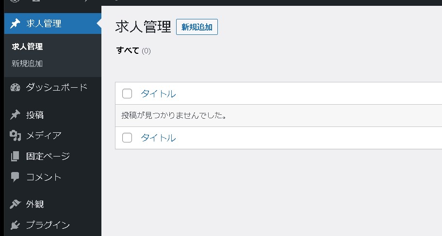 ひとまず、これでカスタム投稿の「求人管理」機能が動くようになりました。次に、こちらの求人管理機能を使って、投稿をできるようにする流れを試していきたいと思います。