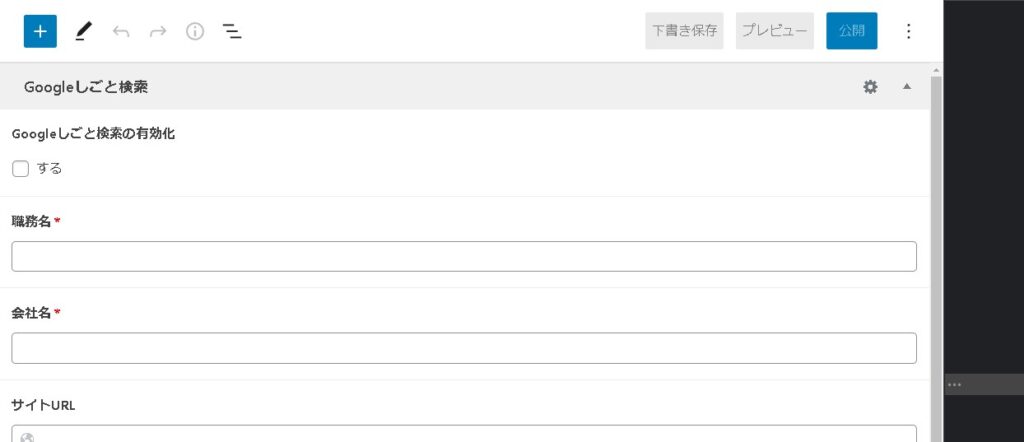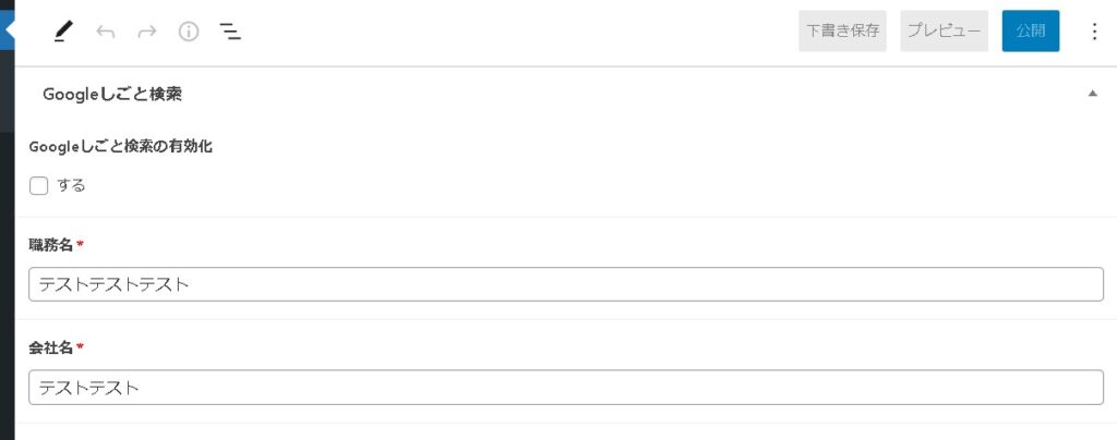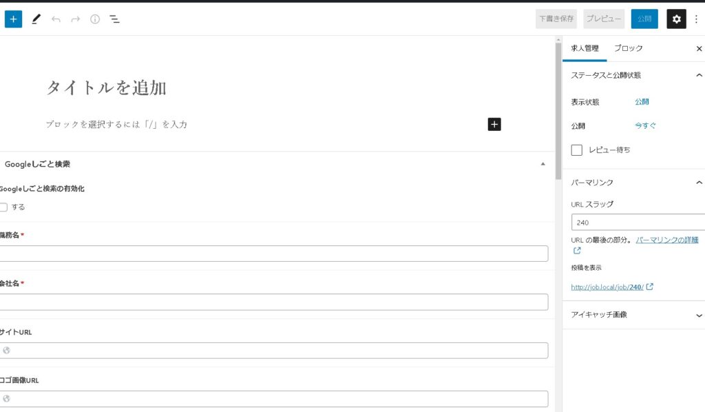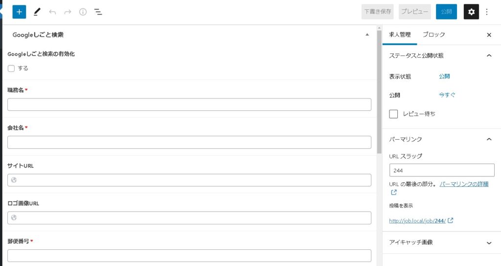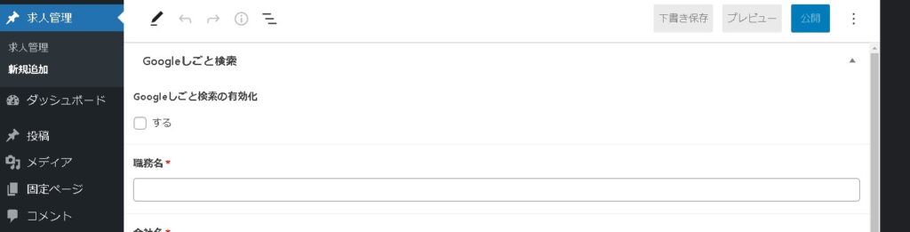 前回までに「Googleしごと検索(Google for Jobs)に求人を掲載する準備で構造化されたカスタムフィールドを作成する」…という部分まで準備ができました。こちらを使って、次に「求人管理」というカスタム投稿タイプを作成していきます。
