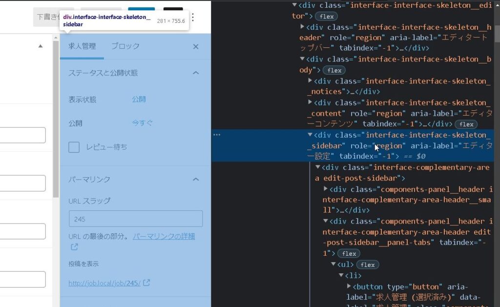 <div class="interface-interface-skeleton__sidebar" role="region" aria-label="エディター設定" tabindex="-1">