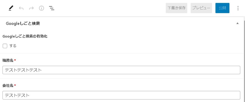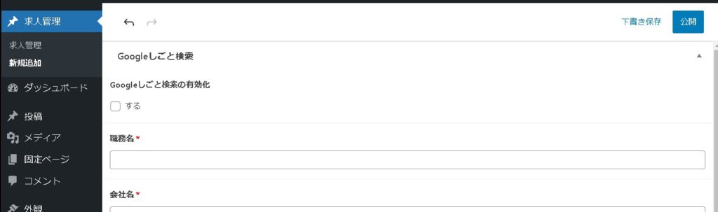 前回まで、Googleしごと検索(Google for Jobs)に求人を掲載するために「求人管理というカスタム投稿タイプを作成して不要な部分を非表示にする」というところまで進みました。ただ、この投稿のタイトルと本文をCSSで非表示にした際に、問題が発生してしまったので、この解決から進んでいきたいと思います。