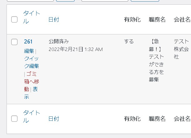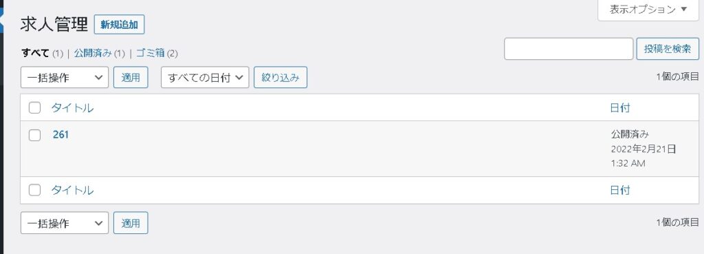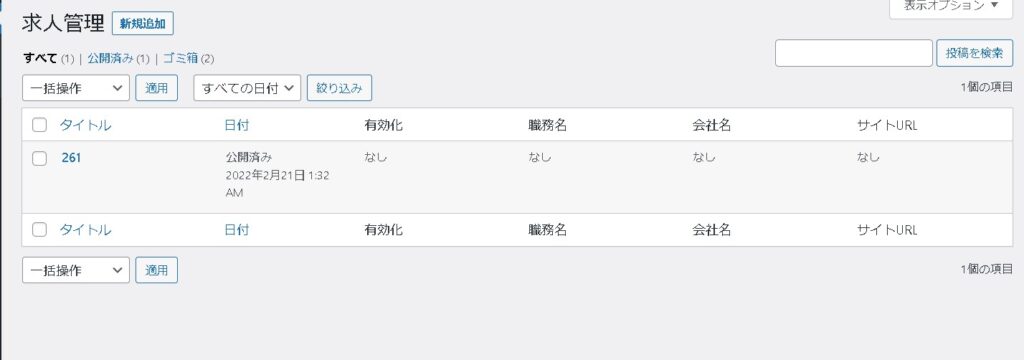前回のままだと、求人管理の新規追加をした時に、ページの「公開」をすることができないままになってしまっていました。
