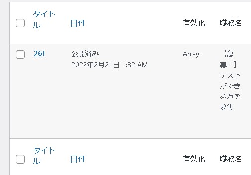 このままだと、管理画面で一覧で表示した時の内容が投稿IDと日付のみが表示されてしまい、何の案件か分からないままになってしまいます…。