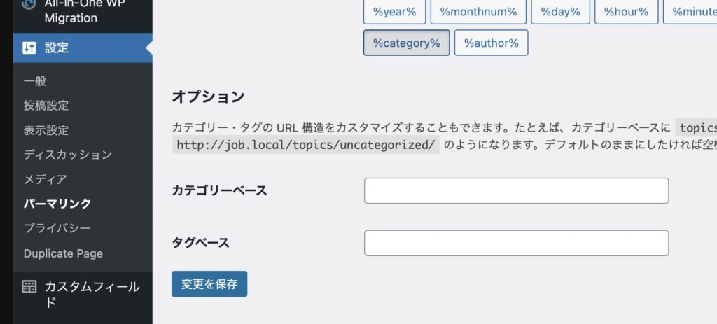 何度も書いていますが、パーマリンクの構造を変更したときは、念のためパーマリンク設定の保存ボタンを押しておきましょう。