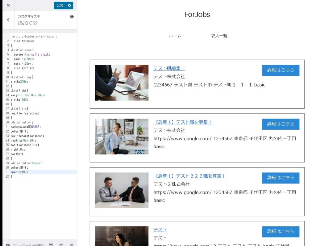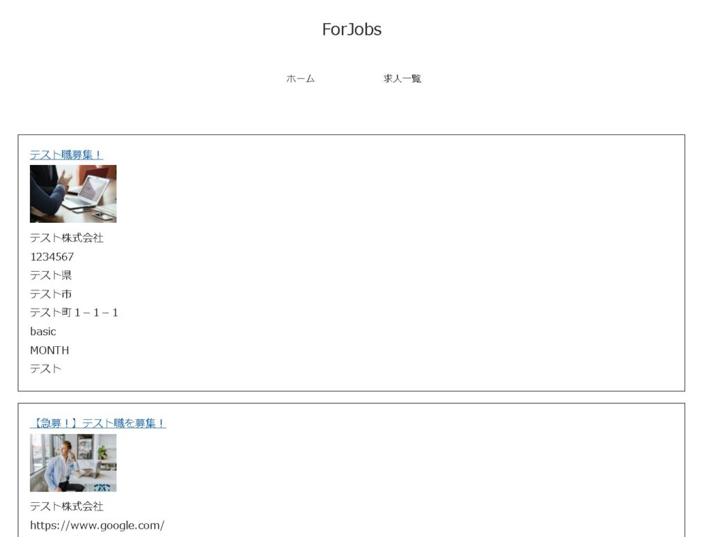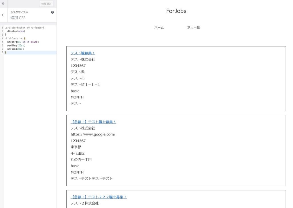 これで「求人管理で案件登録」→「ページ公開」→「一覧に表示」→「デザイン調整」という流れが完成しました!