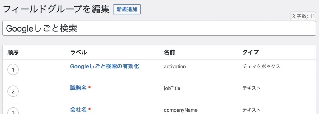 カスタムフィールドの「Googleしごと検索の有効化」を使う