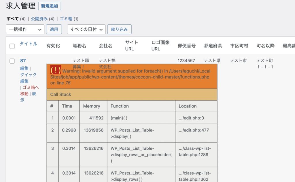 前回「【WordPress】Googleしごと検索(Google for Jobs)に求人を掲載するpart8【Googleしごと検索の有効化を使う】」編でお伝えした時に「ループの出力結果がおかしなことになっている?」というところで詰まってしまいました。その続きです。