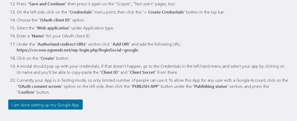 訪問者が自分のGoogleアカウントでログインできるようにするには、最初にGoogleアプリを作成する必要があります。