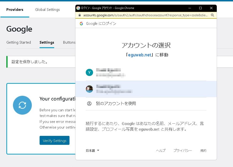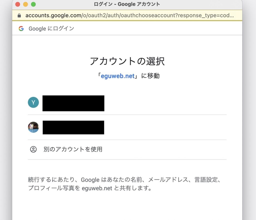 ボタンを押すと、よく見る「Googleアカウントでログイン」する画面が表示されます。