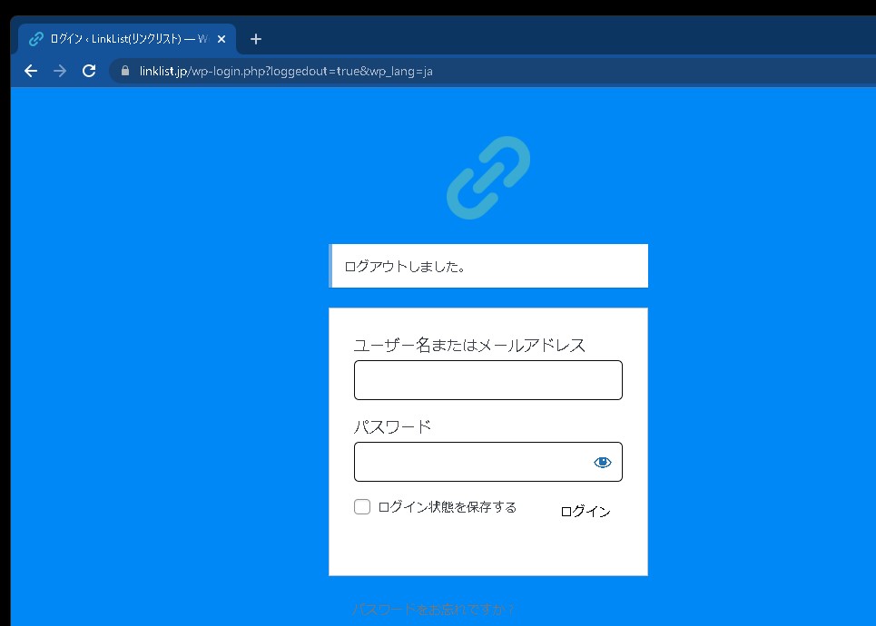 ワードプレス標準の管理画面左メニューにはログアウトの部分がありません。